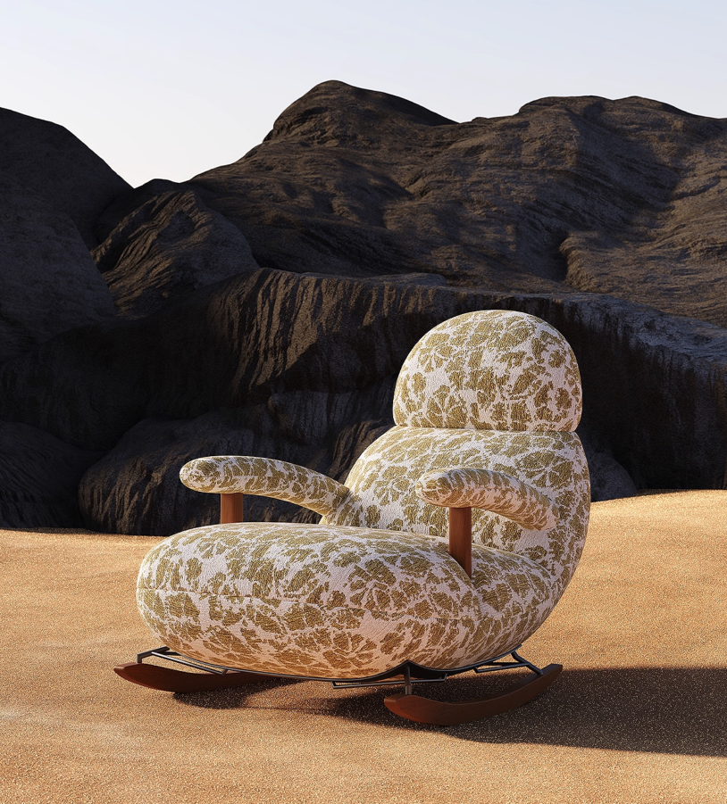 Кресло качалка янтарного цвета Amber, 72*109*86 см, ткань, металл