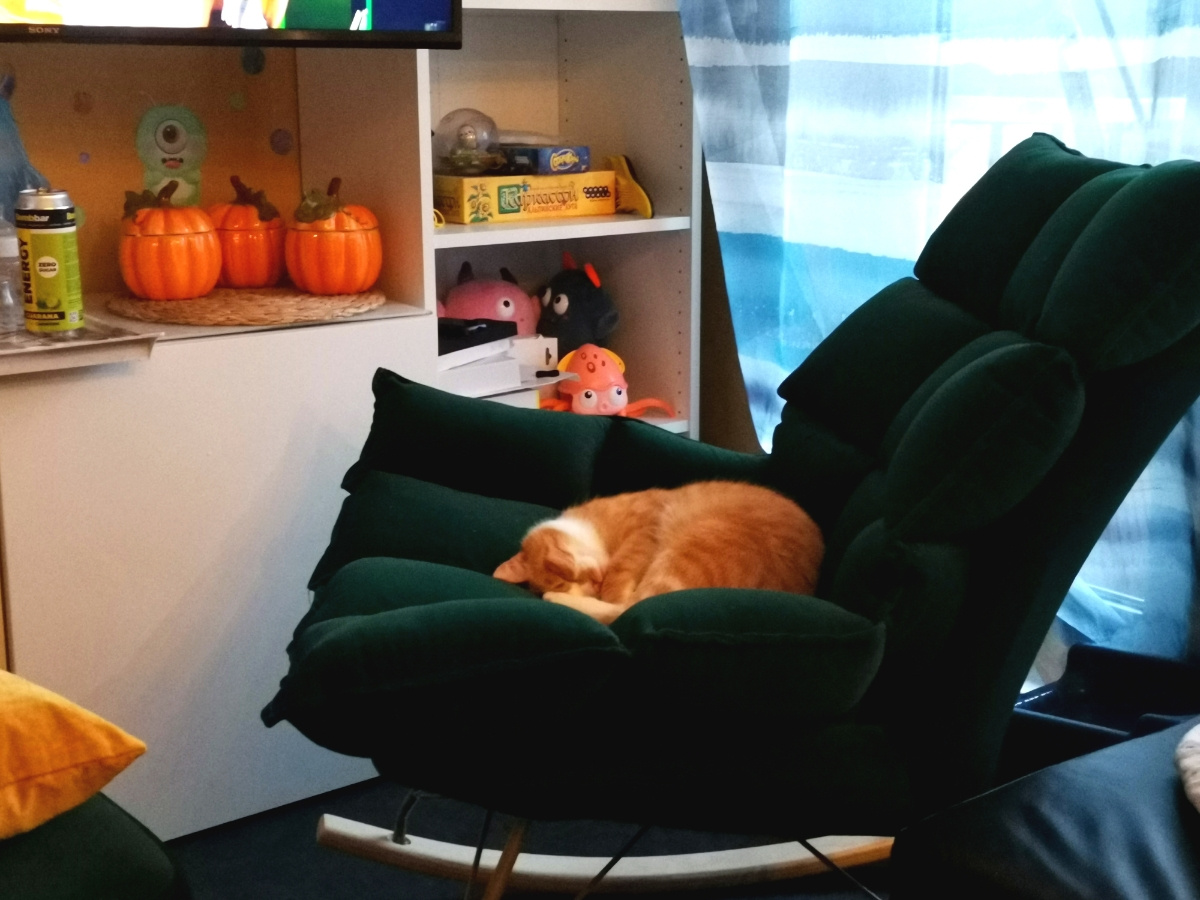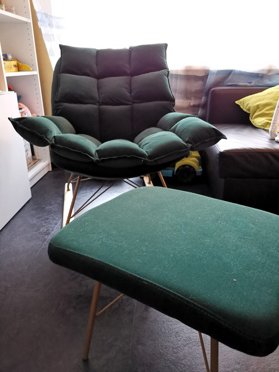 Кресло очень красивое. Взяли для укачивания ребёнка, но теперь приходится делить его с котами. Каркас металлический, устойчивое, удобное. Единственный минус долго шло до Санкт-Петербурга.