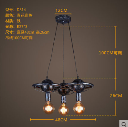 Дизайнерский светильник черный 48*26 см, накаливания, E27, металл, металл, лофт, черный