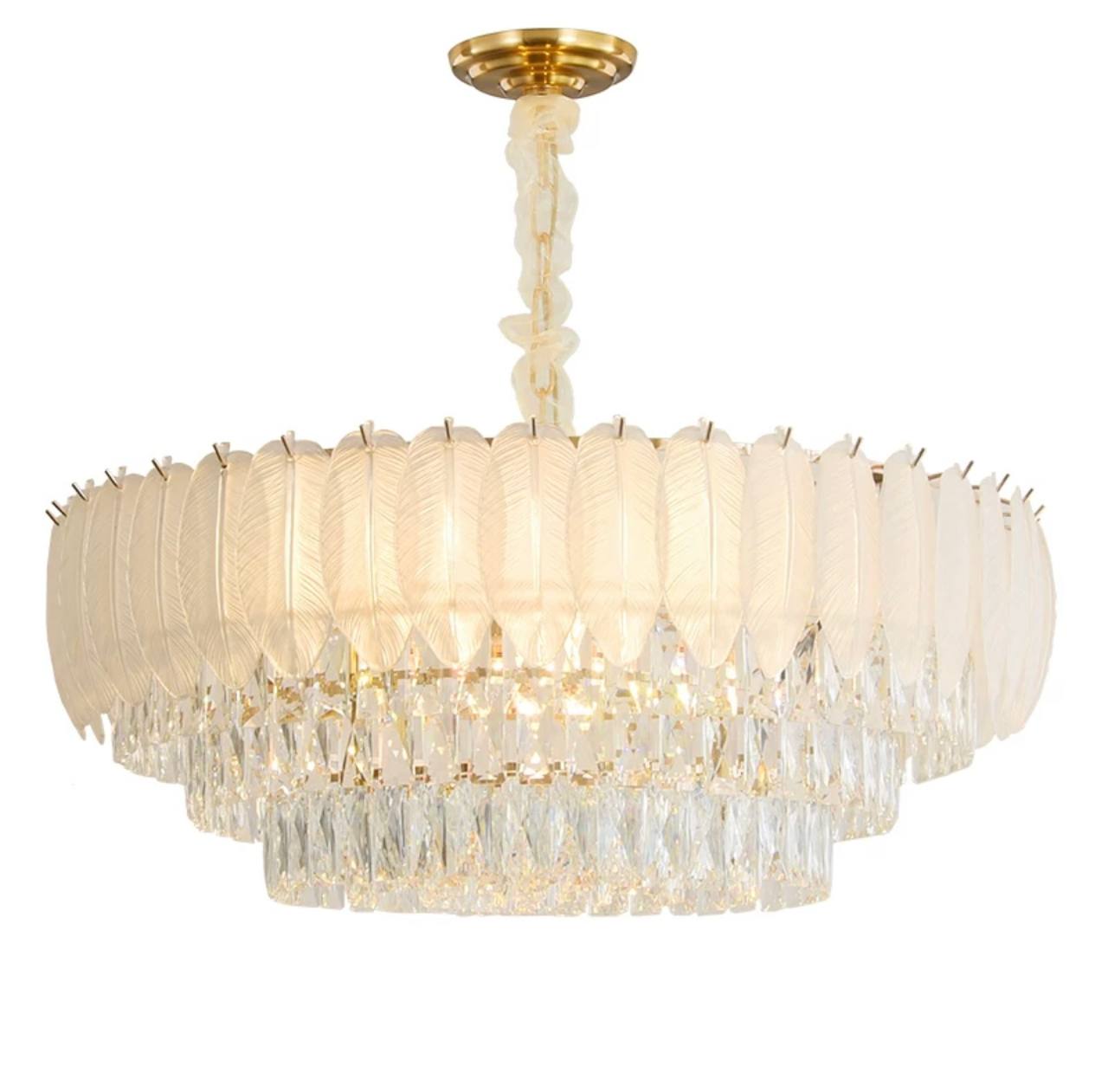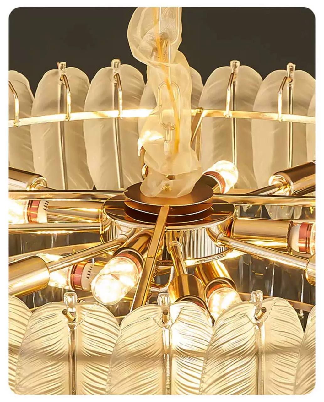 Люстра подвесная AKCICEC 100*35 белый, золото, стекло, металл, Е14.