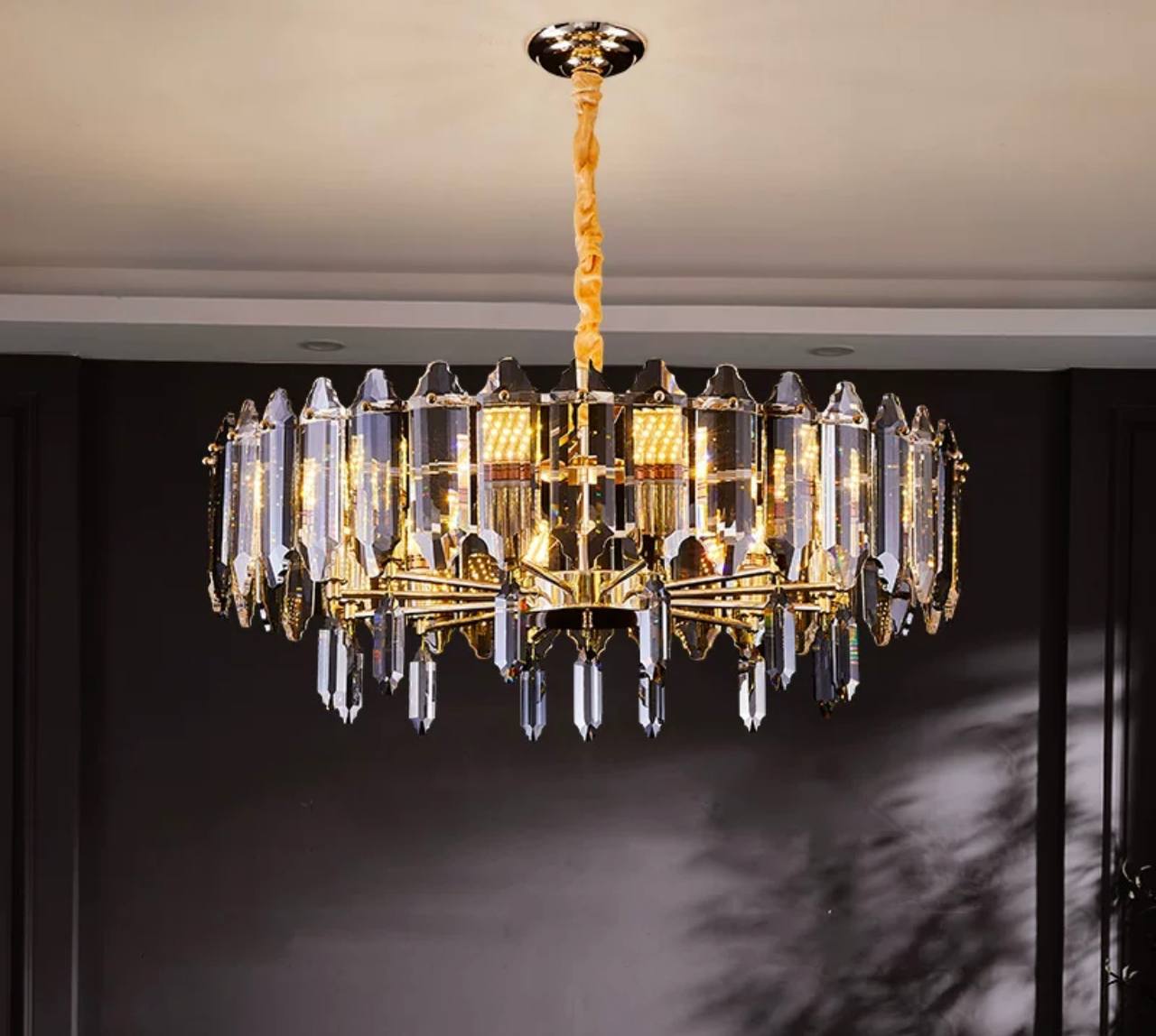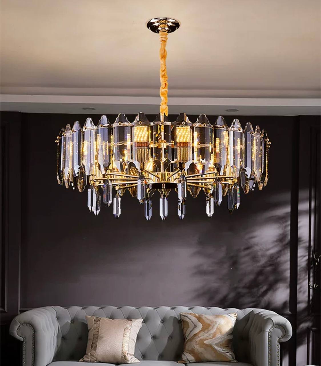 Люстра подвесная ALAGEYIK 60*32 дымчатый, кристалл, металл, Е14.