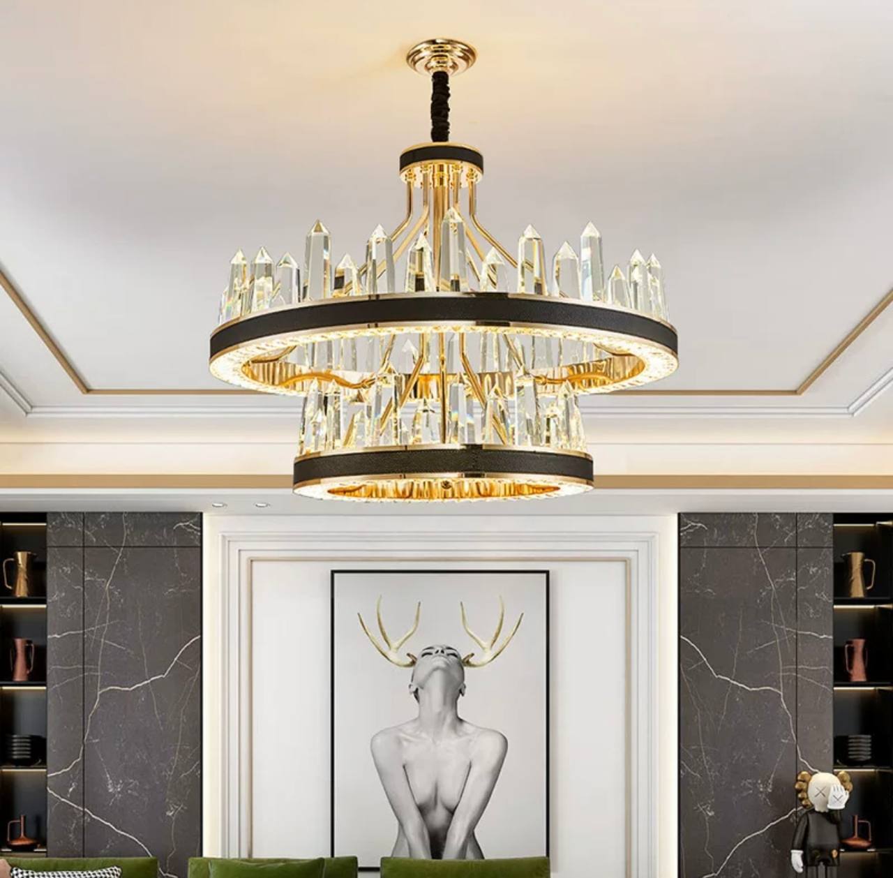 Люстра подвесная ALBENI 50*35 золото, кристалл, металл, LED.