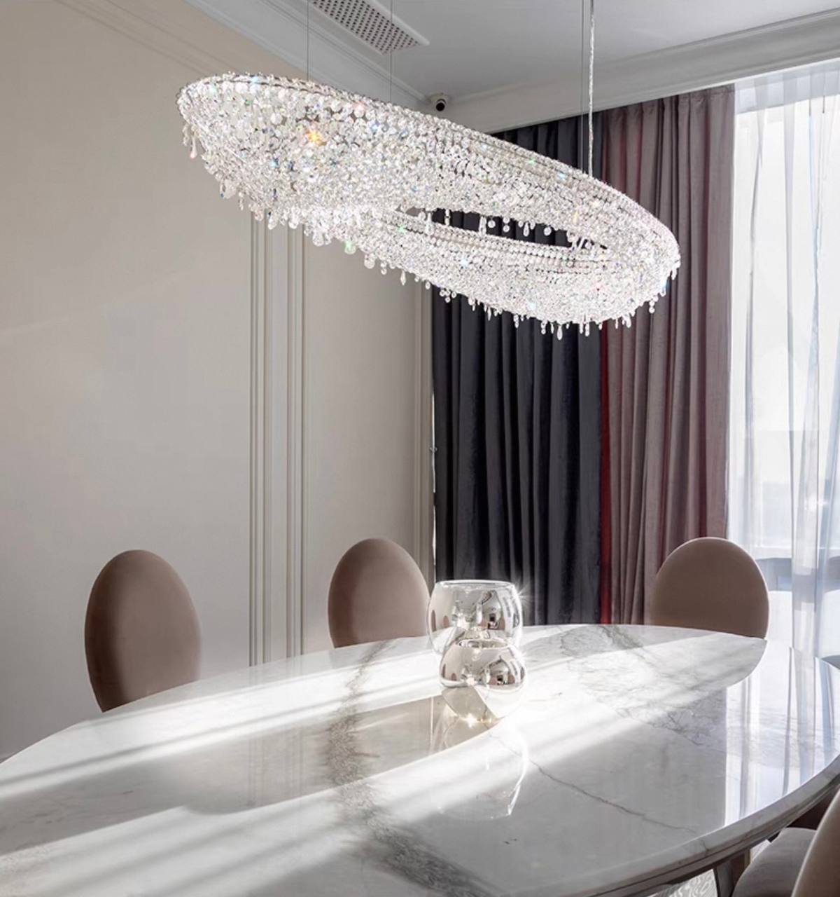 Люстра подвесная, серебро, хрусталь, ZOE 120*52*20 металл, G9.