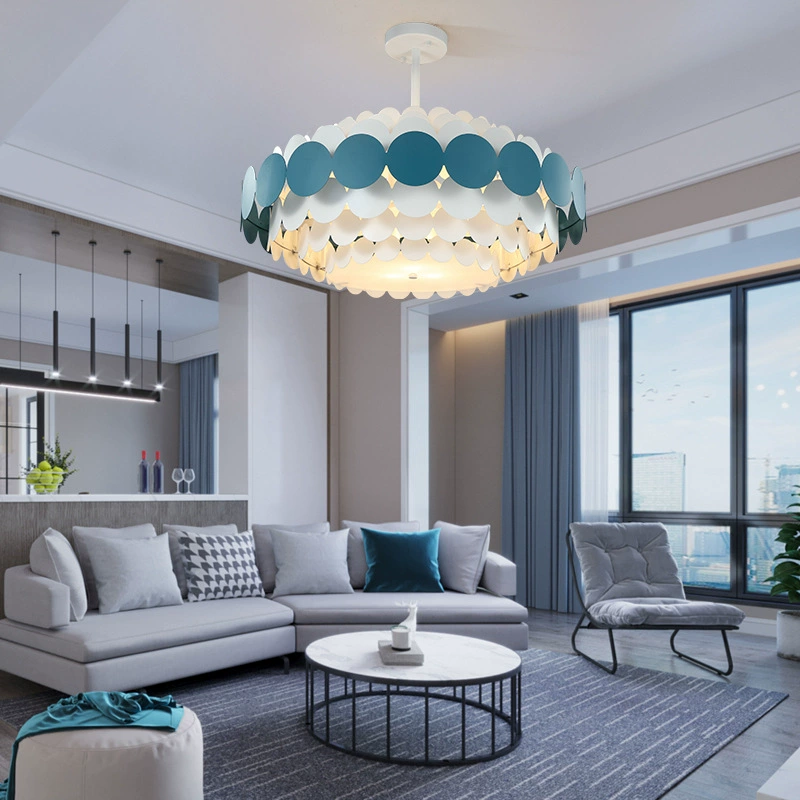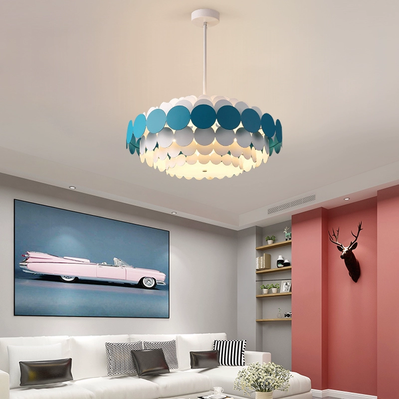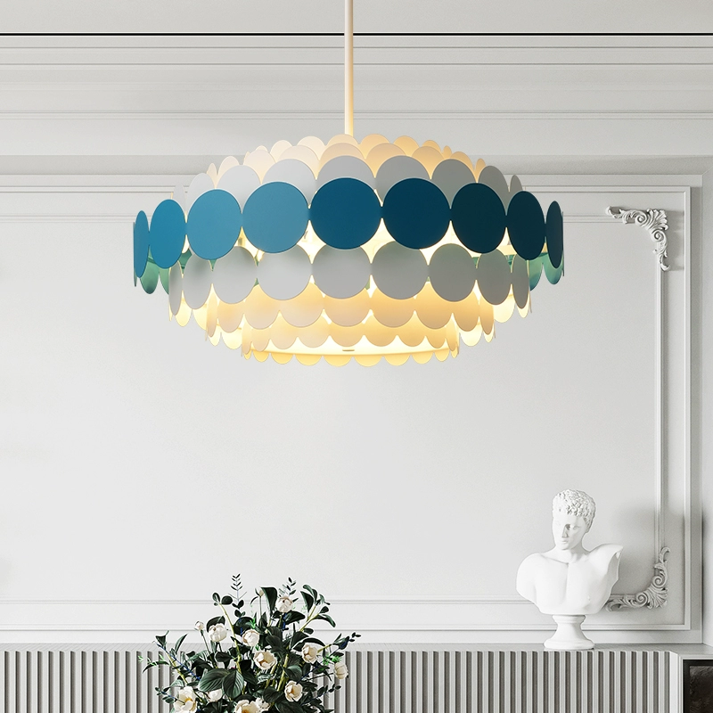 Люстра подвесная, синий, белый, ПММА, ADLAI 80*80, металл, Е14