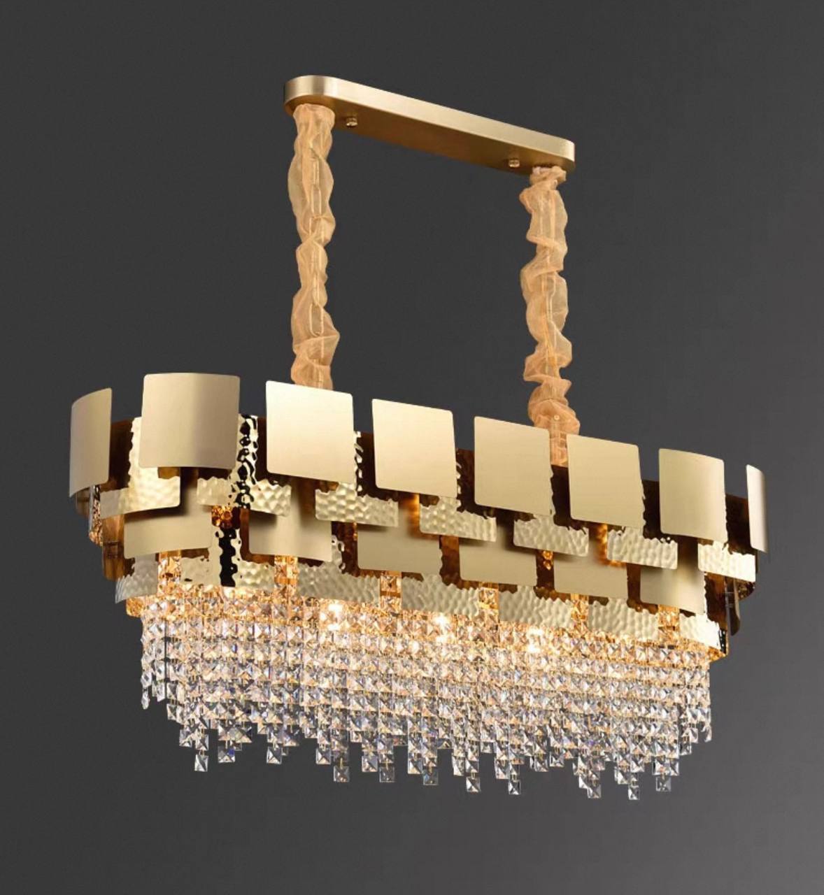 Люстра подвесная золотая Elixtra, металл, хрусталь, трос 50 см, 118*36 см, Е14