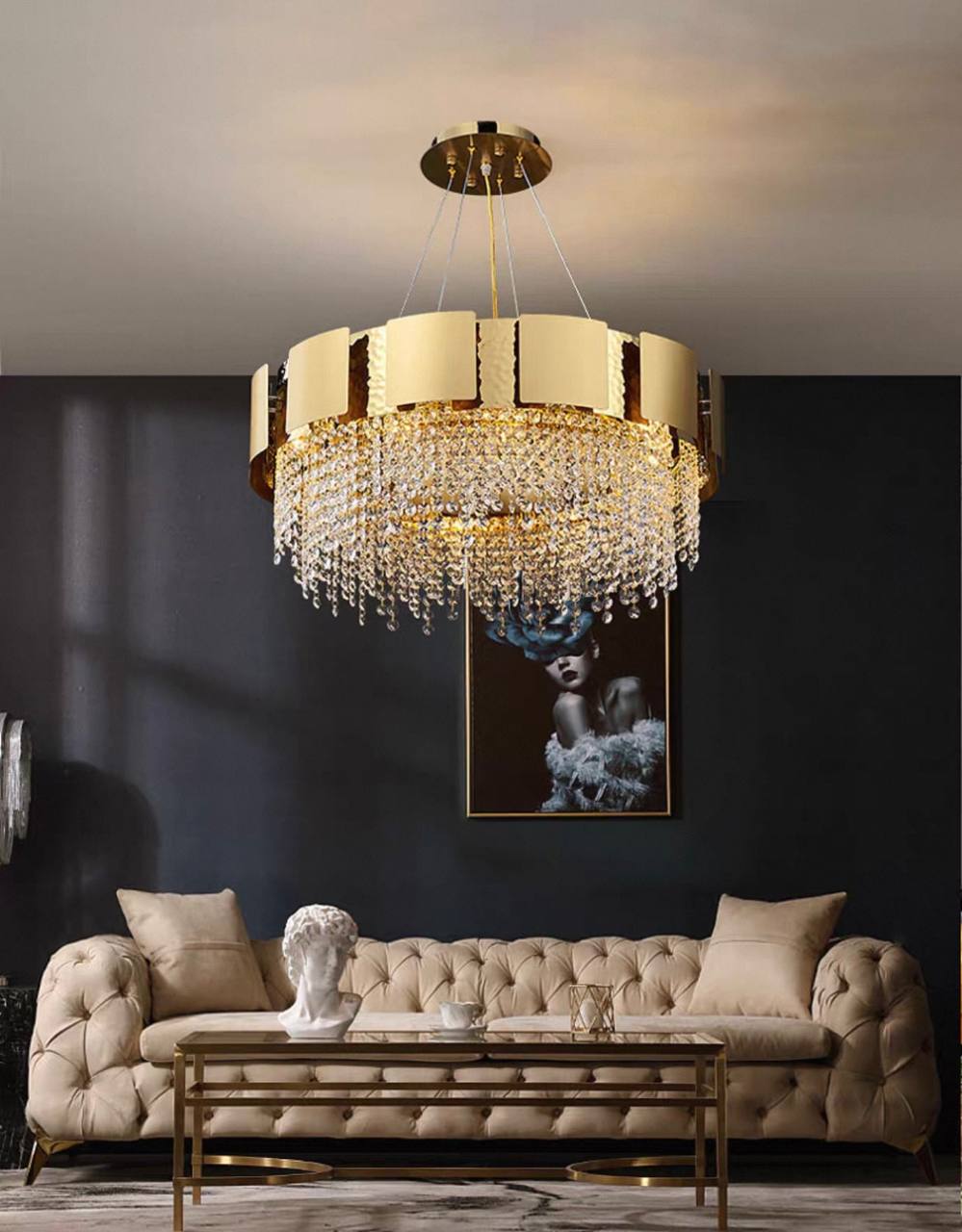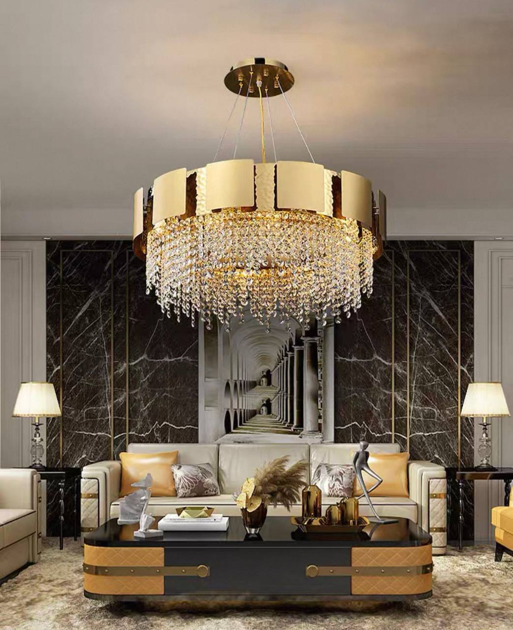 Люстра подвесная Eluvar — это изысканное сочетание современного дизайна и утончённой классики. Золотое металлическое основание гармонично дополняют сияющие хрустальные плафоны, придавая интерьеру лёгкий акцент роскоши и воздушности. Модель оснащена 8 светодиодными лампами с цоколем Е14 мощностью 10 Вт каждая, что обеспечивает мягкое и равномерное освещение площадью до 15 м². Длина подвесного троса 50 см позволяет легко интегрировать люстру в пространство с разной высотой потолков, создавая идеальную световую атмосферу. Эта подвесная люстра — оптимальный выбор для дома, кафе или отеля, где ценится стиль и комфорт. Её современный стиль исполнения гармонично впишется в любой интерьер, от минимализма до классики с элементами гламура. Надёжное потолочное крепление и комплект ламп облегчают установку, а продуманное сочетание металла и хрусталя гарантирует долговечность и привлекательный внешний вид. Добавьте в свой интерьер акцент, который будет притягивать взгляды и создавать атмосферу уюта и изысканности. Закажите подвесную люстру Eluvar и преобразите пространство с лёгкостью. Если остались вопросы — напишите нам в чат. Мы всегда на связи и с удовольствием поможем разобраться во всех нюансах.