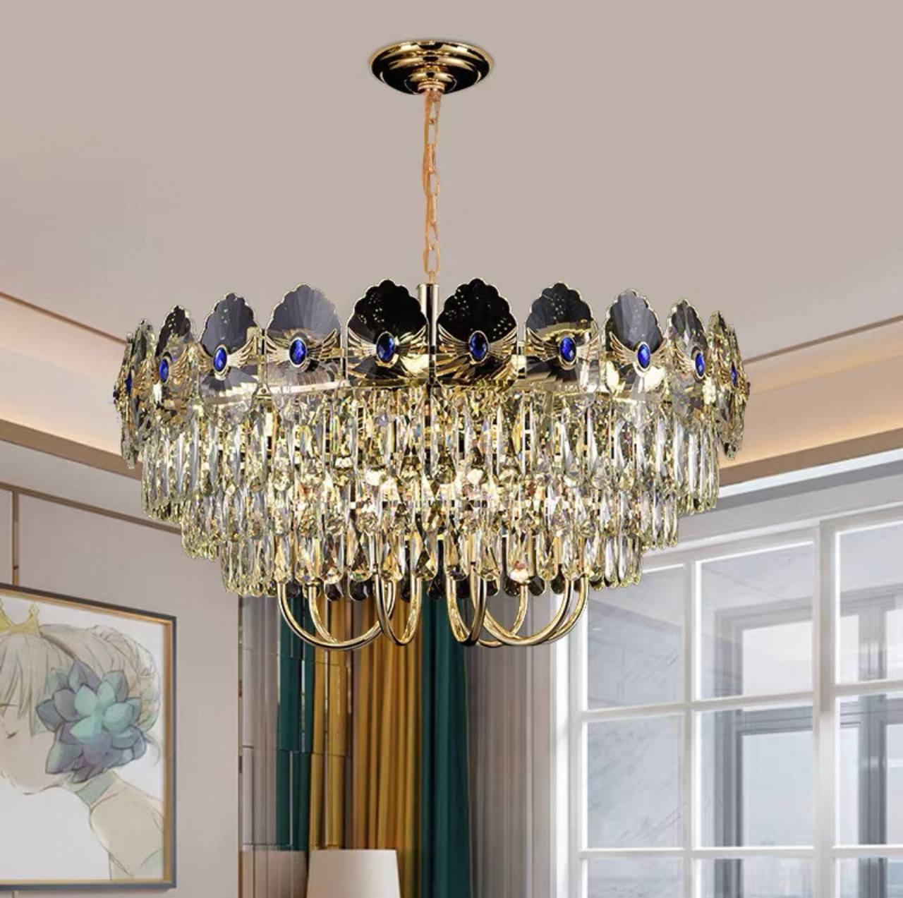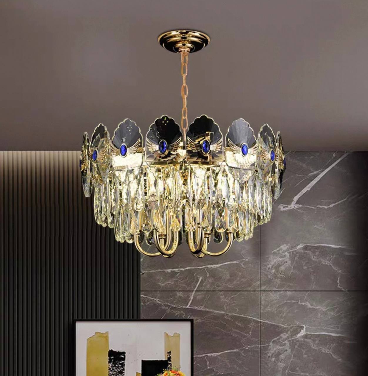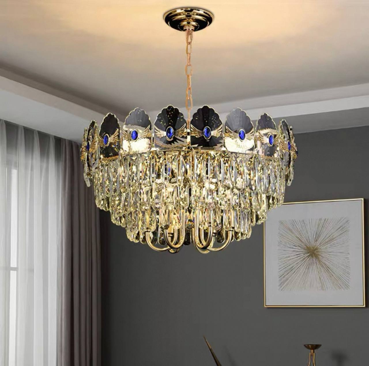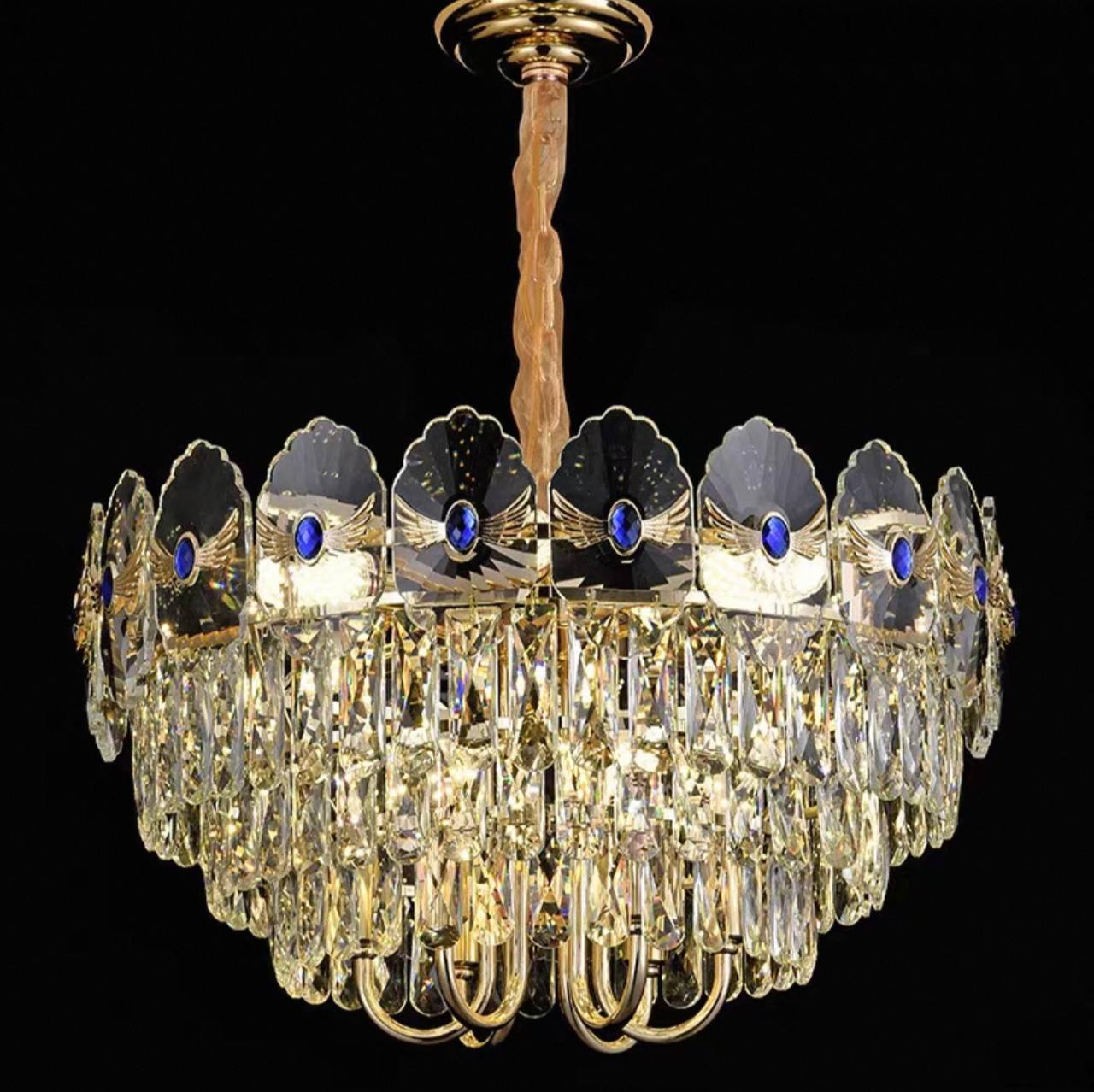 Люстра подвесная, золото, хрусталь, TOMA 60*35 металл, E14.