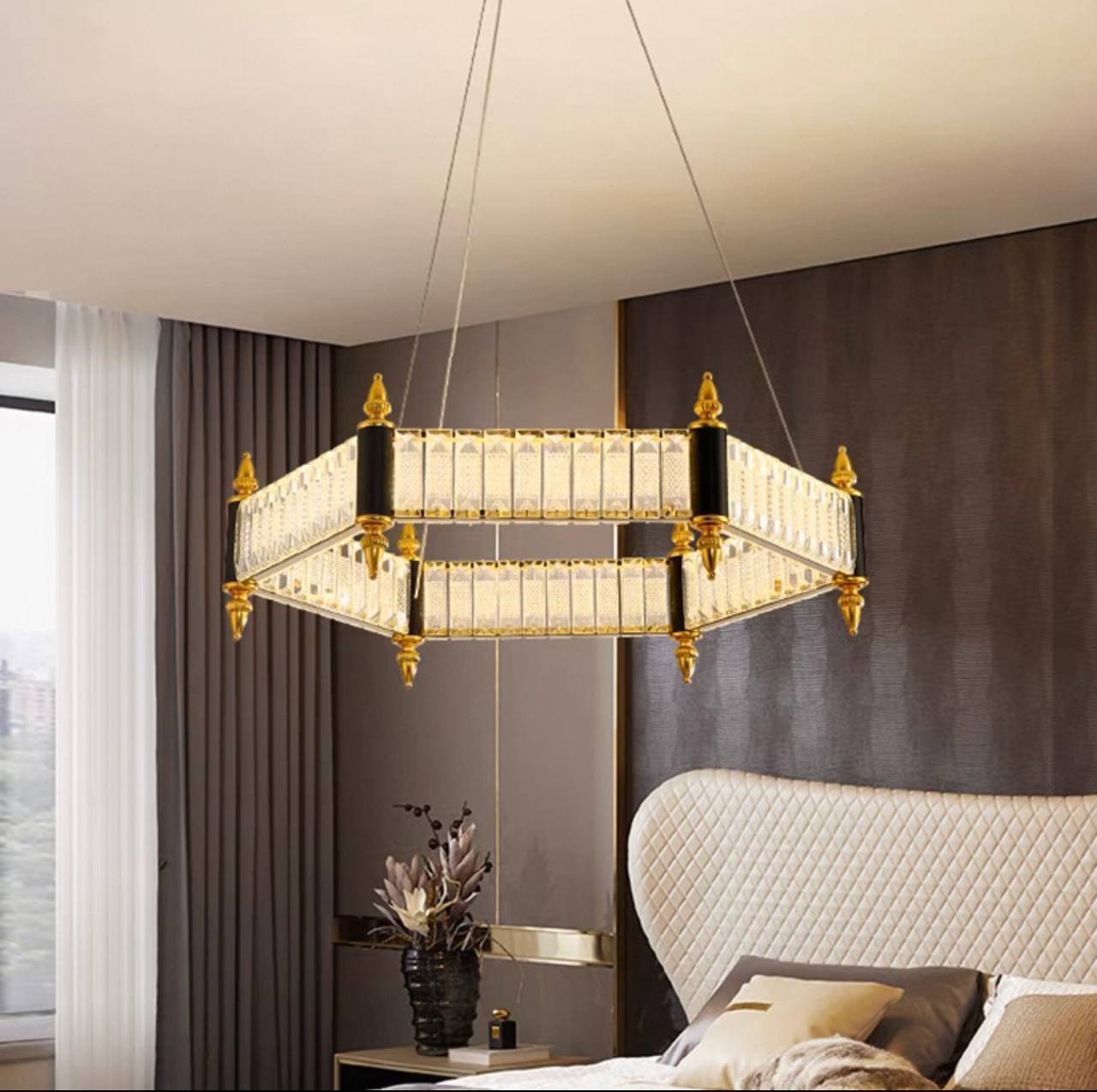 Люстра подвесная, золото, кристалл, ARCHIE 60*18, металл, LED.