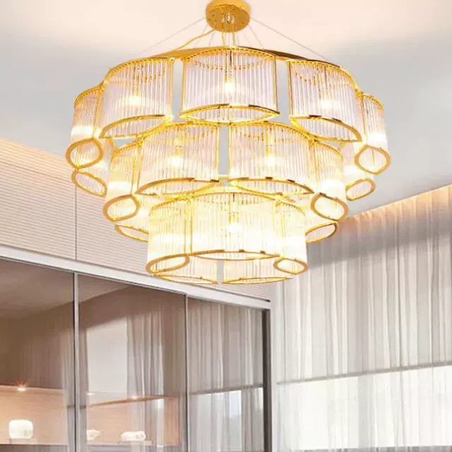Люстра подвесная, золотой, стекло, AYDAN 40+70+100, металл, E14.