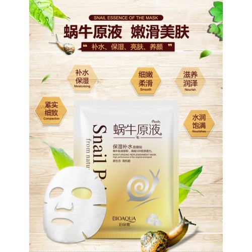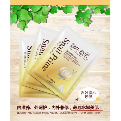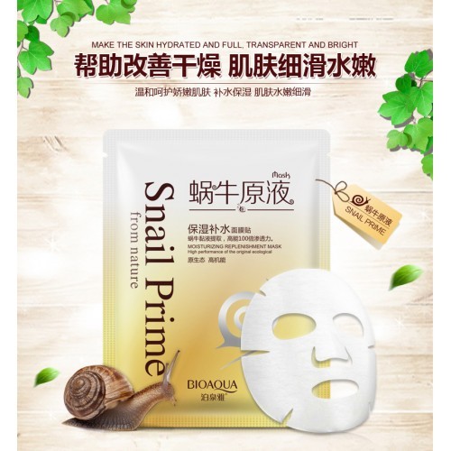 Маска для лица с муцином улитки и шелком Snail Prime Маска для лица с муцином улитки и экстрактом шелка предназначена для все типов кожи. За основу маски взята чистейшая родниковая вода, дополненная действующими компонентами маски. Сбалансированный состав позволяет за считанные минуты достичь желаемого эффекта, а именно лифтинга кожи, насыщения ее питательными веществами. В качестве основного компонента маски выступает улиточная слизь, которая выводит свободные радикалы, вызывающие старение. Как и всем остальным маскам Bioaqua, для этой маски свойственны: 1. Высокая эффективность и мгновенный эффект 2. Продуманный состав и подбор действующих компонентов 3. Качественное сырье и природный состав 4. Удобный формат маски Маска предназначена для тех, кто ищет эффективное средство для мгновенного увлажнения кожи. Главным условиям поддержания положительных характеристик эпидермиса является регулярность проведения процедуры. После регулярного применения кожа сама станет синтезировать необходимые вещества для поддержания молодости и красоты. Метод использования: маску рекомендуется использовать два или три раза в неделю. Маску следует наносить на очищенное лицо чистыми руками. Равномерно распределите маску на лице и оставьте на 25-30 минут, остатки маски должны полностью впитаться после удаления ткани. Для ускорения процесса впитывания можно использовать самомассаж подушечками пальцев. Хранить в прохладном, темном месте. Беречь от детей. Не использовать после истечения срока годности. ООО «Европейская косметика», г. Гуанчжоу Адрес: г. Гуанчжоу, Байюньский район, пригород Жэньхэ, Деревня Дасян, Седьмой экономический кооператив (девятое деление), улица Бэй, здание № 2. Лицензия на производство косметики: Провинция Гуандун, косметика 20160694 Действующий стандарт: GB/T2660 Номер партии и срок годности продукции: указан на упаковке Произведено: г. Гуанчжоу, Китай.