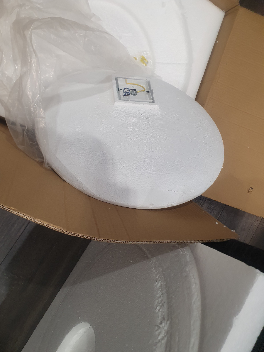 Распечатали одну коробку, на внутренней стороне светильника трещина, как и в коробке. Попросили отправить другой доставкой что бы доехал целый.