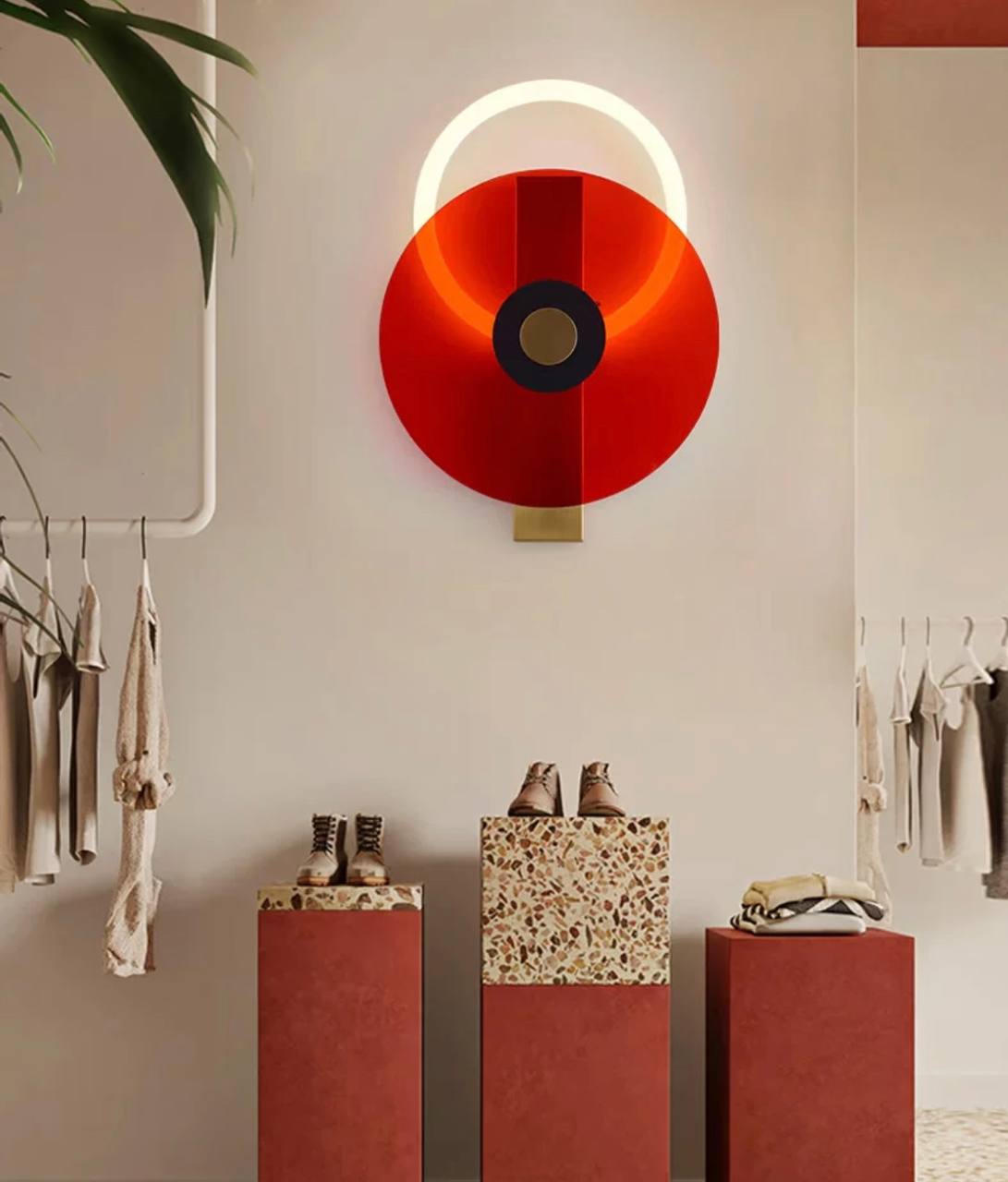 Настенный светильник, Бра, GEOFF 40*30, красный, металл, LED.