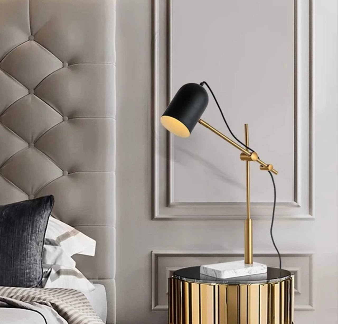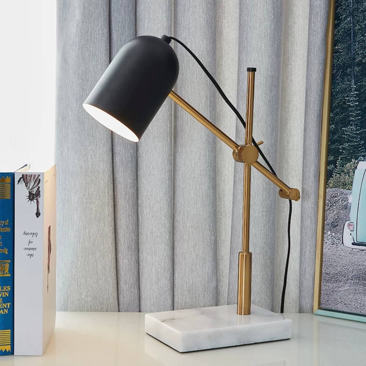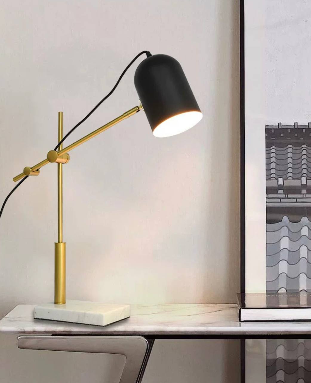 Настольная лампа MOVE станет стильным и функциональным добавлением к вашему интерьеру. Выполненная в элегантной палитре черного мрамора, она впишется в различные стили оформления, от классики до современного минимализма. Этот светильник не только привлекает внимание своим дизайном, но и обеспечивает достаточное освещение для работы и чтения. Лампа отлично подойдет как для домашнего использования, так и для офисов. Благодаря простоте и изяществу форм, она способна создать уютную атмосферу в любой комнате. Ее надежная конструкция гарантирует долговечность и устойчивость, а использование качественных материалов делает светильник надежным выбором для повседневного использования.