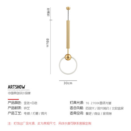 Подвесной светильник Nordic творческая личность кольцо ресторан свет современная минималистская спальня