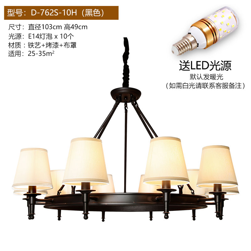 Огни положить американскую страну Простая европейская гостиная Homelight крупномасштабной ресторан спальня ретро кованые железа американская люстра 10 черных (отправка светодиодной лампы)