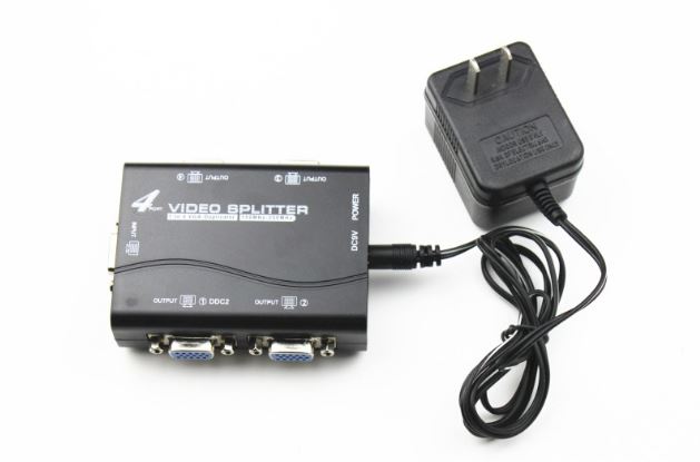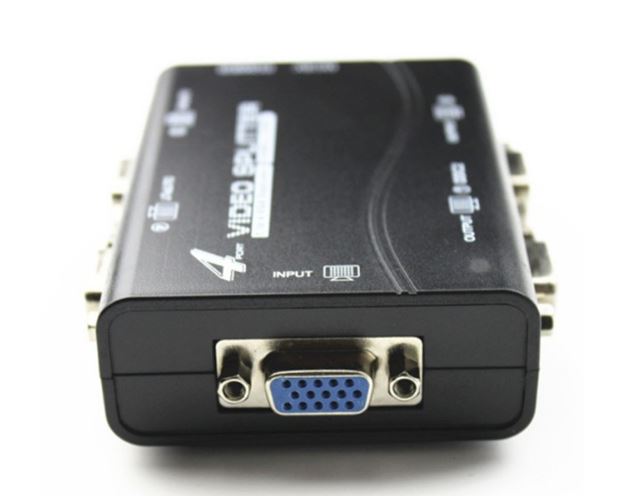 Переключатель VGA KVM Splitter 4=1, 4-х портовый разветвитель аналогового видеосигнала. Интерфейс: VGA (D-Sub 15 pin). Позволит пустить картинку с одного источника сигнала (видеокарта, видеорегистратор и др.) на 4 монитора/ТВ/проектора.