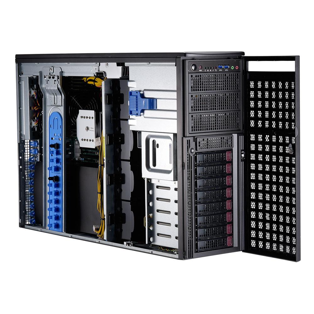Сервер Supermicro SuperWorkstation 7049GP-TRT поддерживает до четырех двойных GPGPU, идеально подходящих для логического вывода, рендеринга и транскодирования видео. Используя два масштабируемых процессора Intel Xeon от Cascade Lake, он поддерживает постоянную память Intel Optane DC для повышения производительности приложений, интенсивно использующих данные, с большой емкостью энергонезависимой памяти так же может быть преобразован в стойку 4U с дополнительными монтажными рейками. Особенности: Поддержка двух масштабируемых процессоров Intel Xeon Поддерживает до 4 графических процессоров Double Wide 16 слотов DDR4 RDIMM, поддержка Intel Optane DCPMM 2 x 10GBase-T LAN-порта и выделенный IPMI 8 x 3,5 "отсеков для дисков с возможностью горячей замены Рабочая станция Tower с дополнительным 4U стоечным креплением ЦПУ : Поддержка 2 x процессорных процессоров Intel Xeon Socket P, LGA 3647 Поддержка процессоров TDP 70-205 Вт До 28 ядер Набор микросхем : Intel C621 Память : 16 x DDR4 слотов DIMM Поддерживает до 4 ТБ 3DS ECC RDIMM / LRDIMM Поддерживает до 2 ТБ ECC LRDIMM Поддерживает до 1 ТБ ECC RDIMM Минимум 2133 МГц Поддерживает Intel Optane DCPMM с процессором Cascade Lake Пакет: 1 х Super X11DPG-QT Материнская плата 1 х 4U шасси 1 х 8-портовая гибридная объединительная плата 4U / Tower SAS3 12 Гбит / с, поддерживающая до 4 3,5-дюймовых жестких дисков SAS3 / SATA3 / SSD и до 4 накопителей NVMe / SAS3 / SATA3 NVMe / SAS3 2 х MINI SAS-4 SATA, INT, 64/54/44/34 см, 64 см SB, 30AWG 1 х STD I / O щит для сервера X9 / X10 / X11 МБ с прокладкой EMI и майлара 1 х 7049GP-TRT Руководство пользователя 2 х 4U Активный теплоотвода процессора Поддержка Narrow Bolster Plate Монтажный механизм для X11 Перли платформы 2 х 1U 2200 Вт с резервированием, Титан, 76 (Ш) Х 40 (В) Х 336 (Л) мм 2 x 80x80x38 мм 4-контактный PWM вентилятор в сборе для SC743, SC745 2 x 92x38 мм 4-контактный ШИМ-ВЕНТИЛЯТОР W / HUS для SC747 2 x 92x92x38 мм, 7,5 тыс. Об / мин, средний вентилятор SC747 для графического процессора пассивного охлаждения 1 х распределитель питания для решения 4U GPU