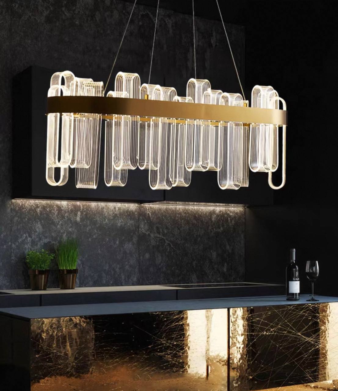 Светильник подвесной медный Exivra, металл, трос 120 см, 80*30 см, LED