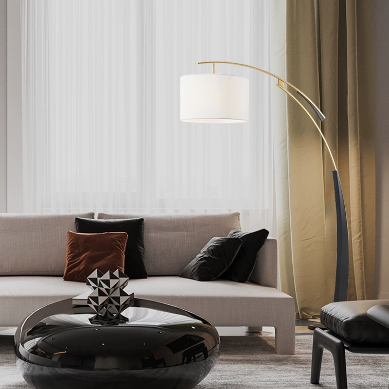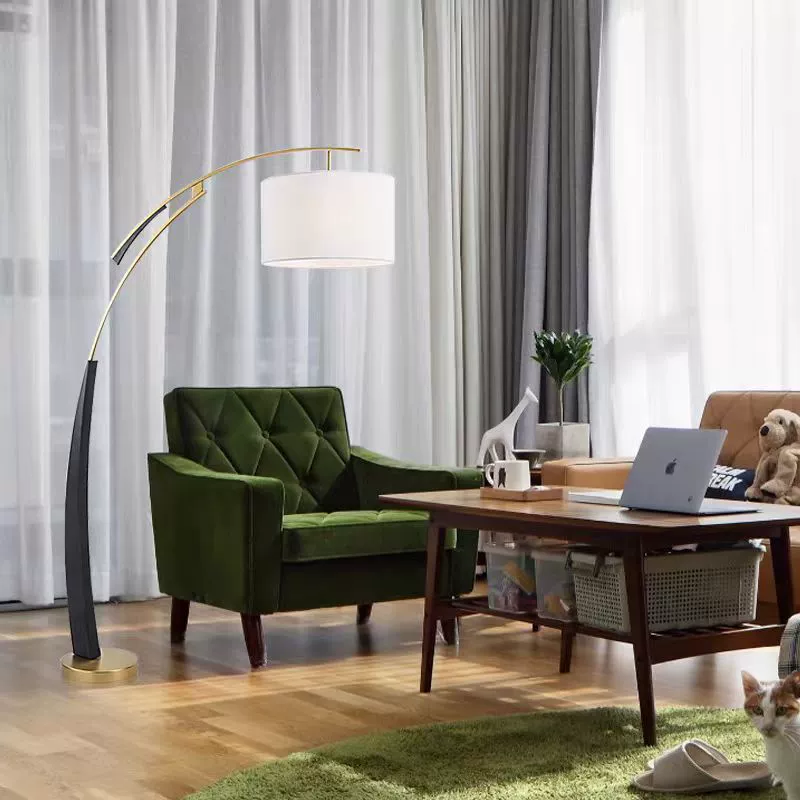 Торшер белый, черный, золото Calder, 135*182, светодиодный, E27, металл, ткань