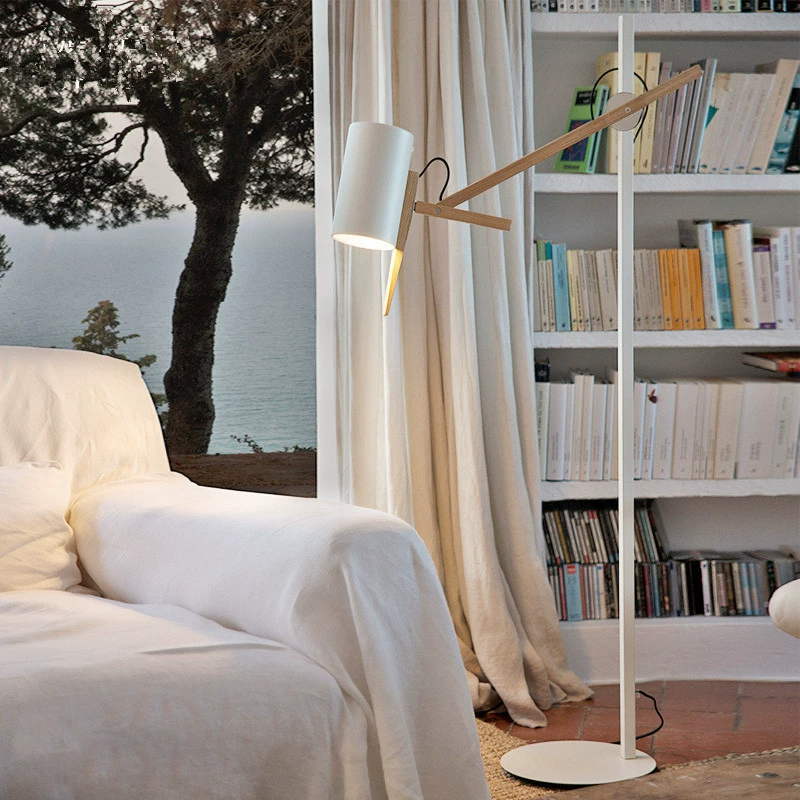 Торшер белый дерево Aluvex, 40*135 см, LED, E27, металл, дерево, 14 Вт