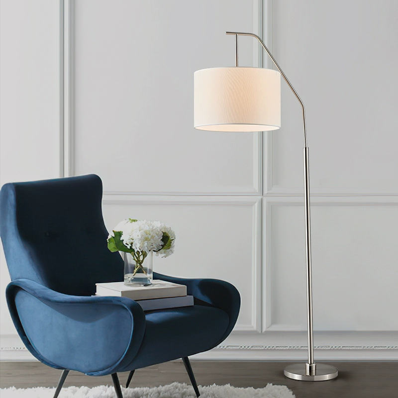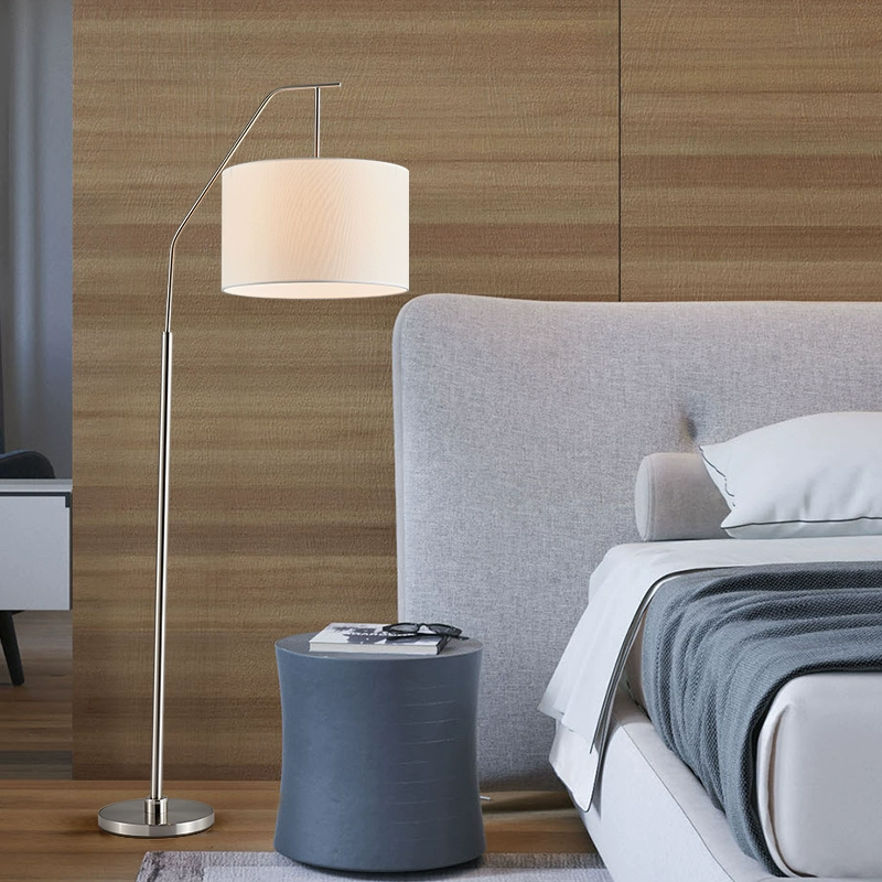 Торшер бежевый, никель Eliot 40*165, светодиодный, E27, металл, ткань