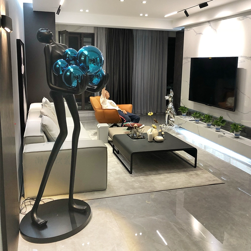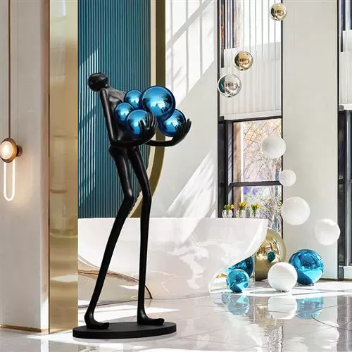 Торшер человек с синими шарами черный NIM, 80*42*180 см, LED, E27*6, смола со стекловолокном, 24 Вт
