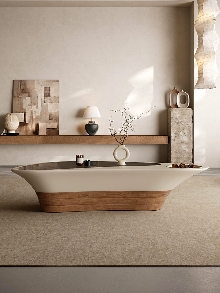 Журнальный стол Abyss Aircraft Carrier, в стиле ваби-саби, кремовый, 140х80х30 см.